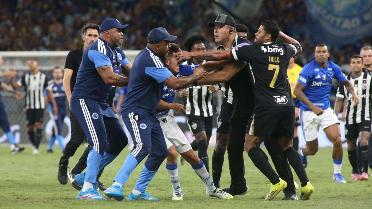 Jogadores de Cruzeiro e Atlético se envolveram em briga generalizada na final do Campeonato Mineiro,…