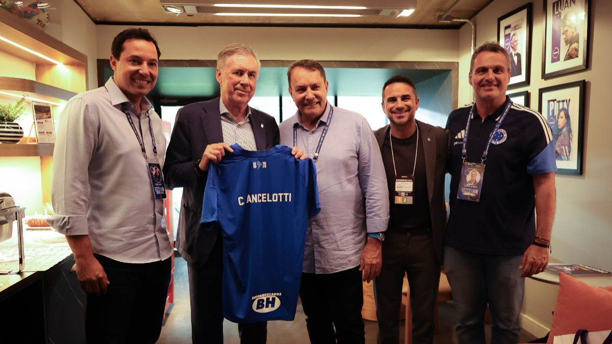 Técnico da Seleção Brasileira, Ancelotti é presenteado por Pedrinho em jogo do Cruzeiro