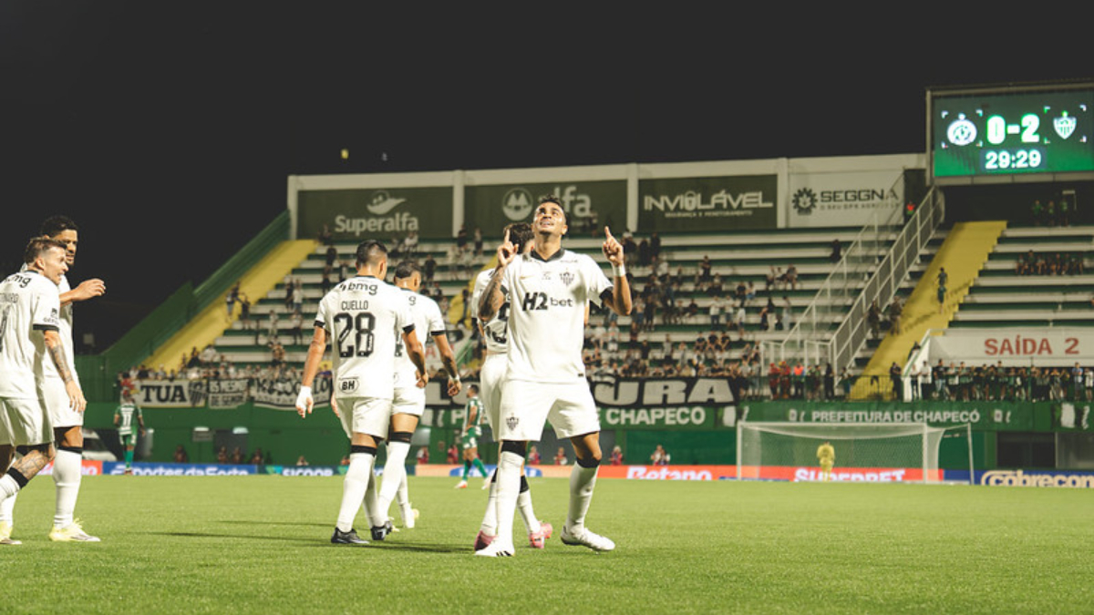 Atlético jogou bem, dominou o jogo e venceu a Chapecoense por 4 a 0; Bernard,…